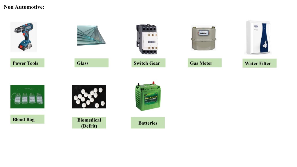 Industrial, electrical, consumer, and life-science sectors beyond passenger vehicles - metering, power distribution, glass, power tools, filtration, medical disposables, and energy storage.